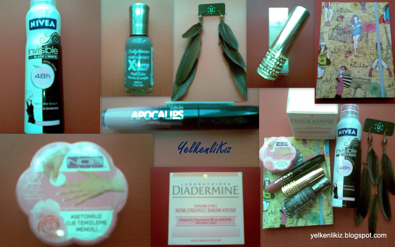 - NOB Asetonsuz Oje Temizleme Mendilleri: Yazısı burada. Artık kaçıncı kutuyu bitirdim, hatırlamıyorum bile. Eskiden yolculuklara çıkarken yanıma aseton ve bir avuç pamuk alırdım, şimdi çantama NOB'u atıyorum, yetiyor :) Bütün çeşitlerini denedim, favorim üzümlüsü.